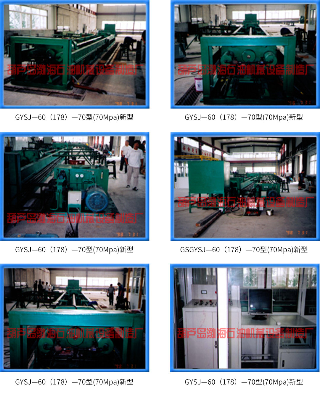 注:GYSJ—60/178—70型油管試壓機(jī)采用(無(wú)背鉗夾緊)油管(套管)70MPa單管試壓機(jī)。