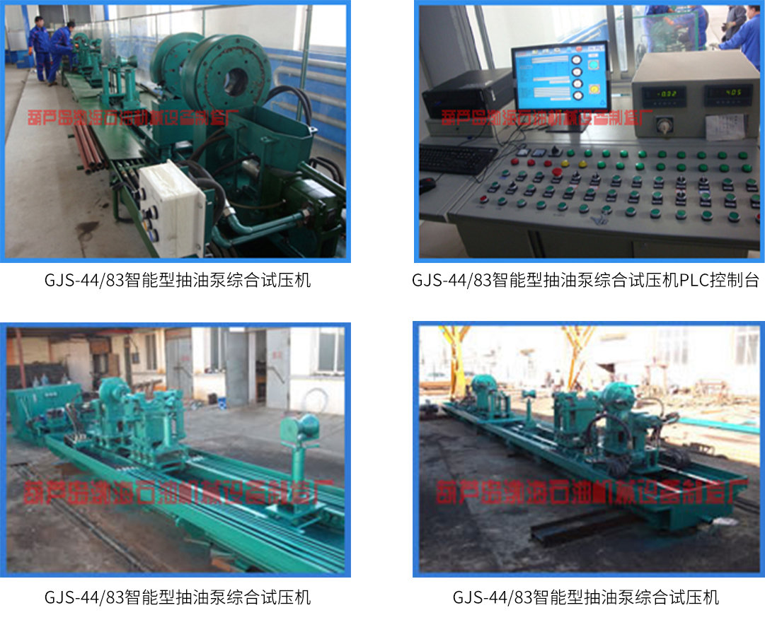 GJS-44/83智能型抽油泵綜合試壓機是我廠新研制的抽油泵試壓機,主要用于舊抽油泵拆裝和新舊抽油泵檢測(壓力檢測和漏失量檢測)。試壓過程由PLC自動控制,漏失量自動計量。計算機顯示壓力、扭矩、漏失量數據,且具有自動儲存、報表、打印等功能。